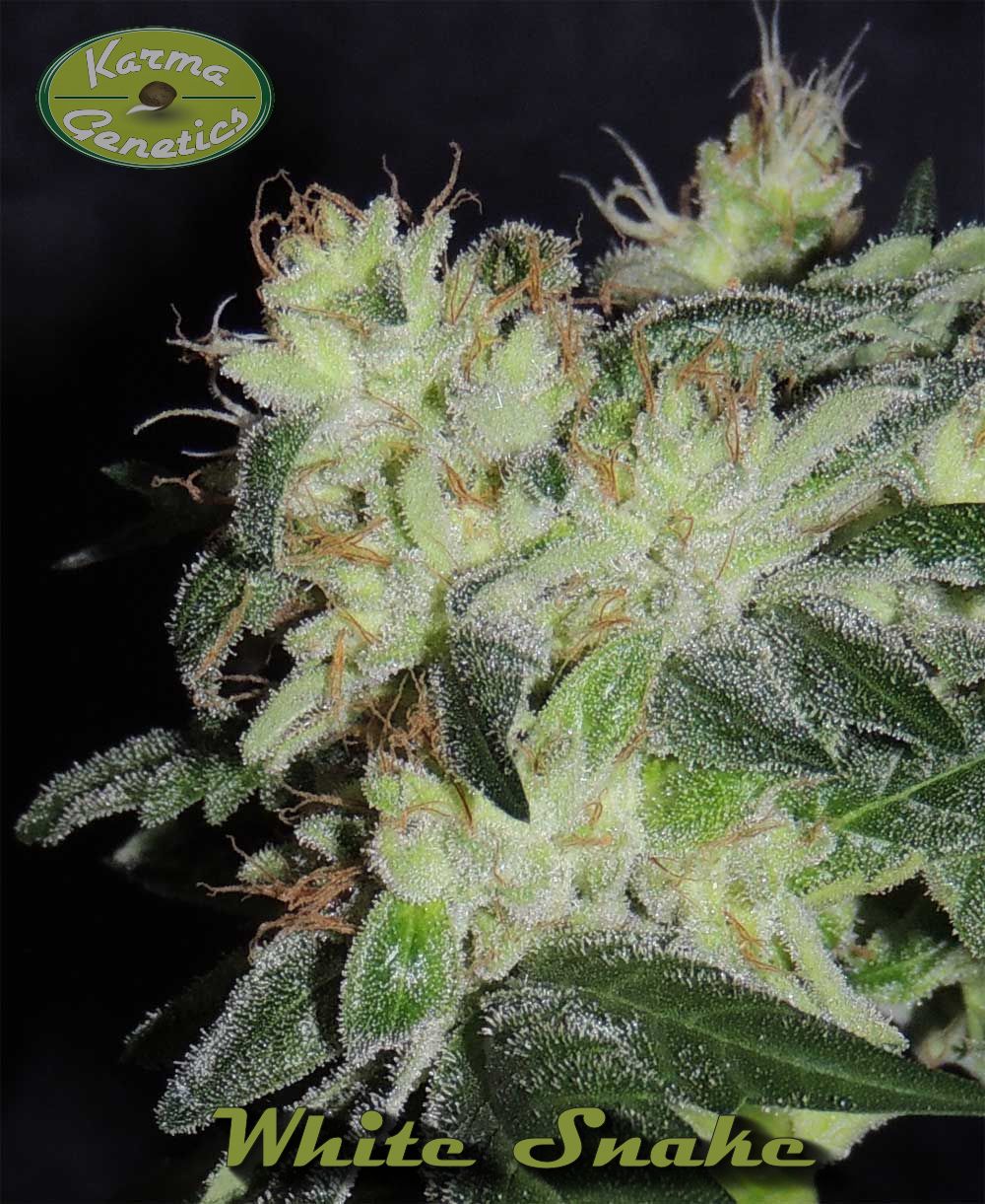 White Snake LTD is a mix of my Headbanger mom and White OG V2.0 male. She will produce sweet to hashy, sour-type smells. This one is a real mouth-watering flavor of sweet and sour candy and can produce big top buds. She is easier to grow than the Headbanger mom and loves a good PK boost during mid-flower.